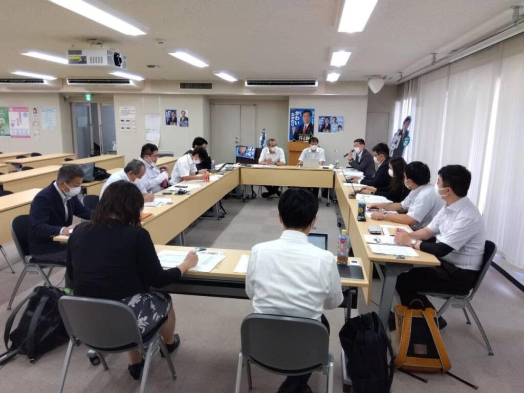 片川委員長が議長をつとめ、各労働組合の質問などを受け、活動報告や労働条件等に関する