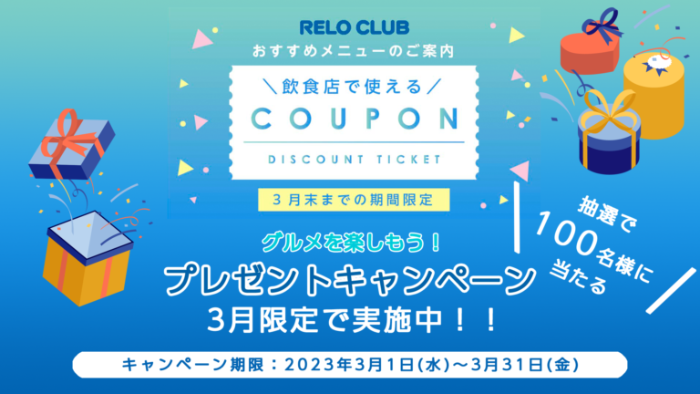 また、3月限定で「リロクラブ グルメプレゼントキャンペーン」も実施中です