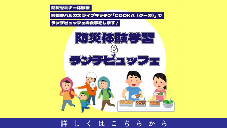 体験型防災施設で映像や疑似体験を通じ、地震や風水害などの知識や備えを学んだ後にあべのハルカス「COOKA(クーカ)」にてビュッフェ